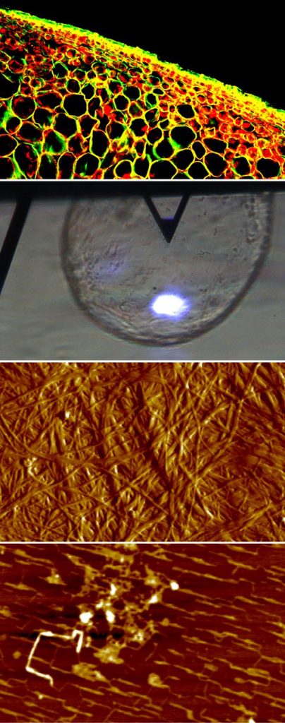 Naszym celem jest zrozumienie jak poszczególne elementy strukturalne tkanki, ich umiejscowienie oraz wzajemne oddziaływania wpływają na rozwój i właściwości roślin. Badania te prowadzimy eksperymentalne stosując metody mikroskopowe (min. AFM, CSLM, Raman, SEM), spektroskopowe (FTIR, Raman) połączone z analizą obrazu, chromatograficzne, badania mechaniczne oraz symulacje komputerowe (DFT, MD, FEM, DEM).