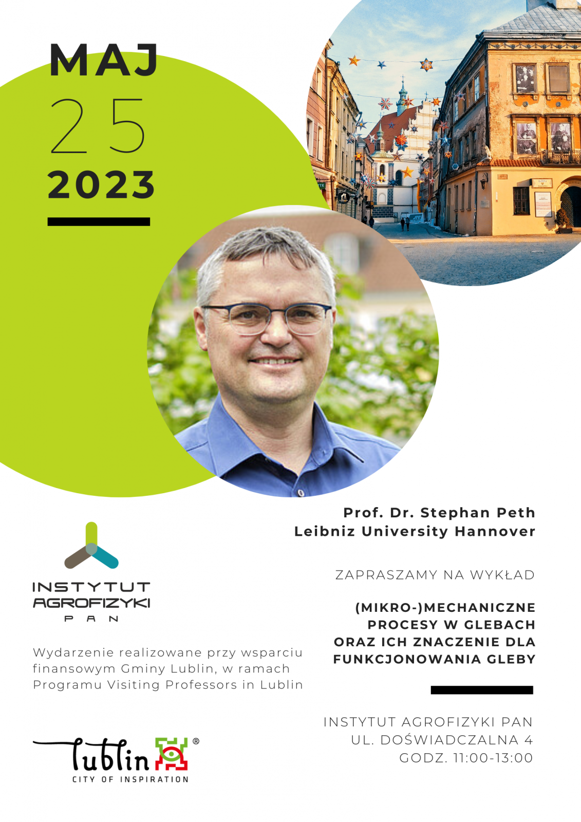 Serdecznie zapraszamy na seminarium dla pracowników i doktorantów Instytutu Agrofizyki oraz zainteresowanych mieszkańców Lublina prof. dra hab. Stephana Peth pt. „(Mikro-)mechaniczne procesy w glebach oraz ich