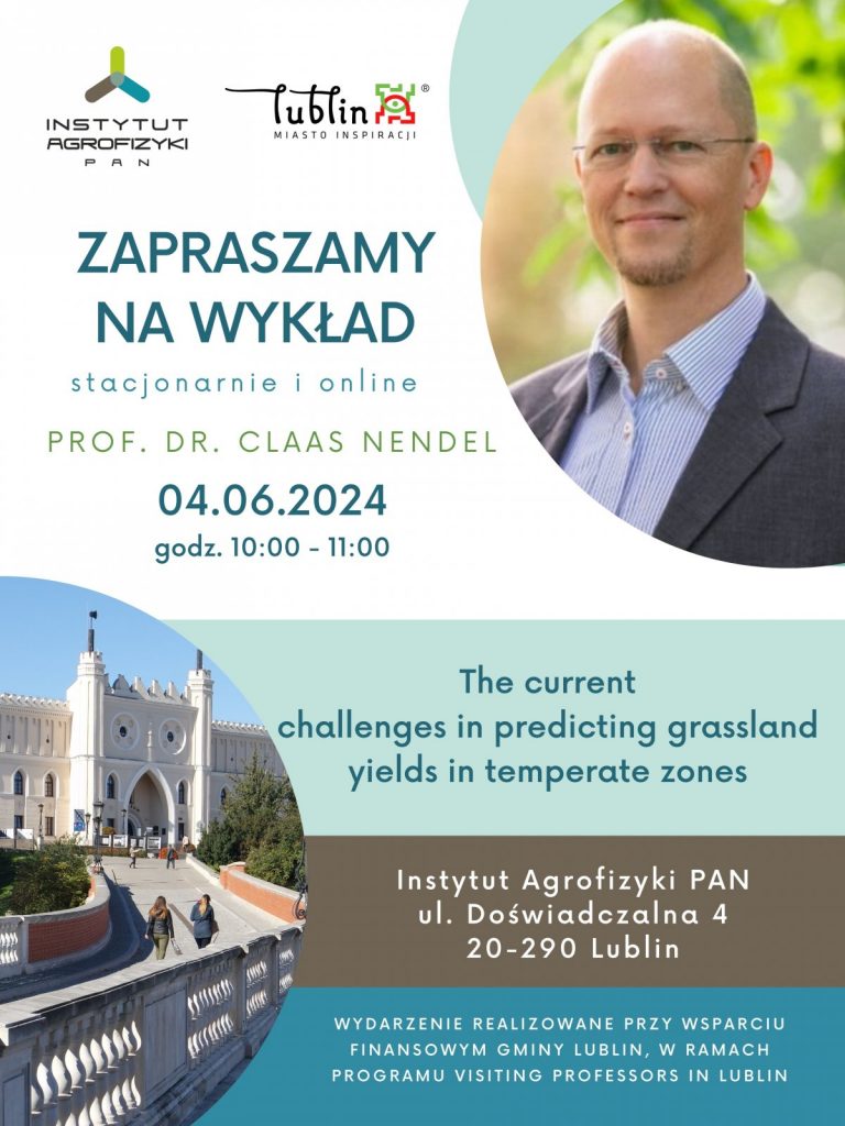Instytut Agrofizyki PAN w Lublinie oraz Prezydent Miasta Lublin mają zaszczyt zaprosić Państwa na wyjątkową wizytę Prof. dr Claasa Nendela, wybitnego naukowca z Niemiec, która odbędzie się w dniach 2-5