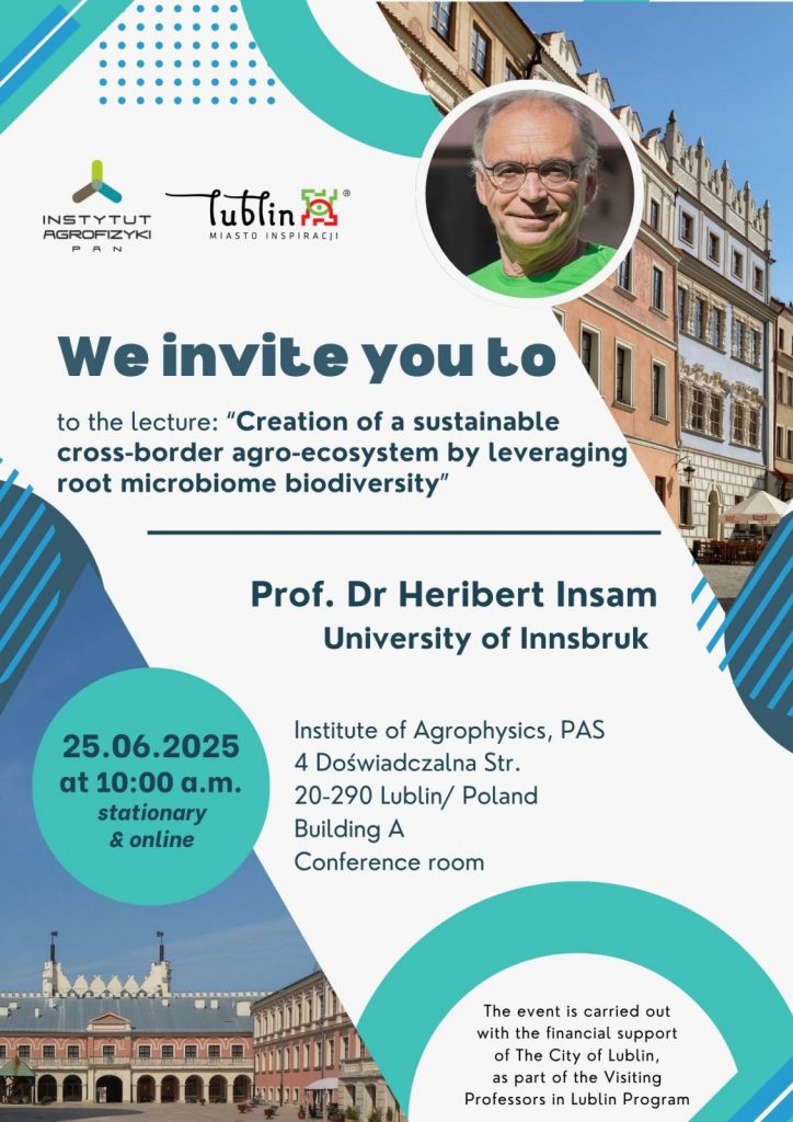 W czerwcu gościem Instytutu Agrofizyki PAN będzie Prof. Dr Heribert Insam, reprezentujący University of Innsbruck (Austria) – światowej klasy ekspert w dziedzinie ekologii mikroorganizmów, biologicznego przetwarzania odpadów (w tym kompostowania i fermentacji beztlenowej) oraz ekologii molekularnej. Profesor zdobywał doświadczenie naukowe i badawcze w wielu krajach świata, m.in. w Argentynie, Kostaryce, Etiopii, Francji, Włoszech, Meksyku, Tajlandii i Republice Południowej Afryki.