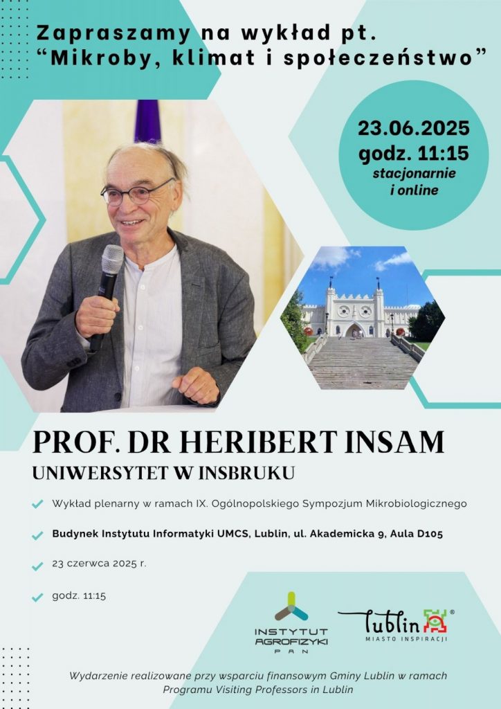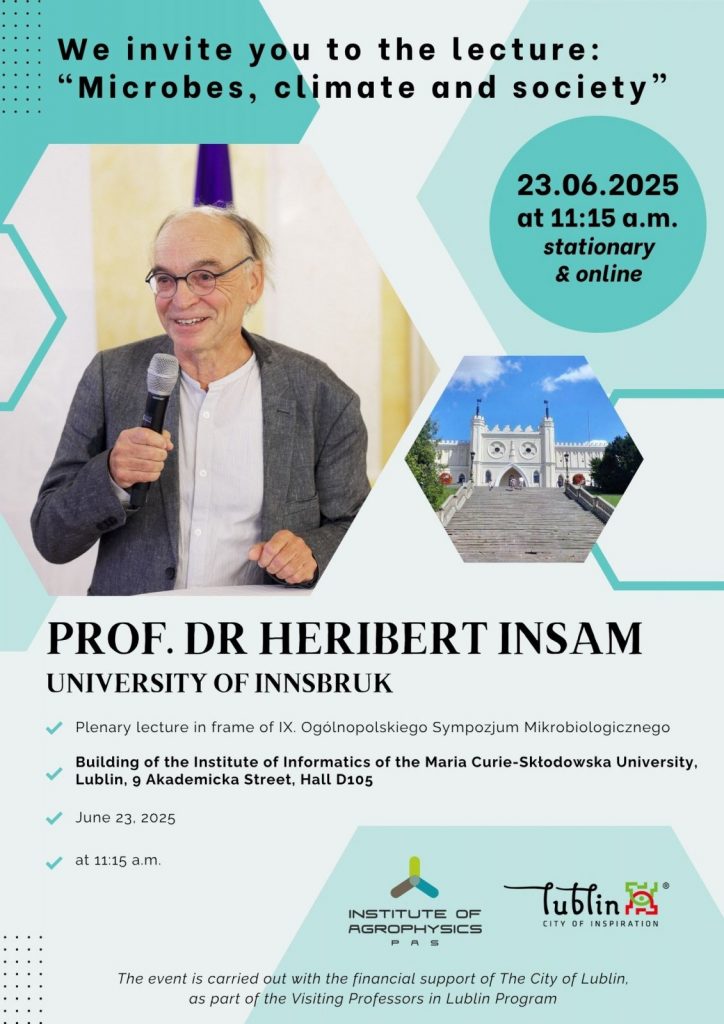 Tytuł wykładu: “Mikroby, klimat i społeczeństwo” / “Microbes, climate and society”
