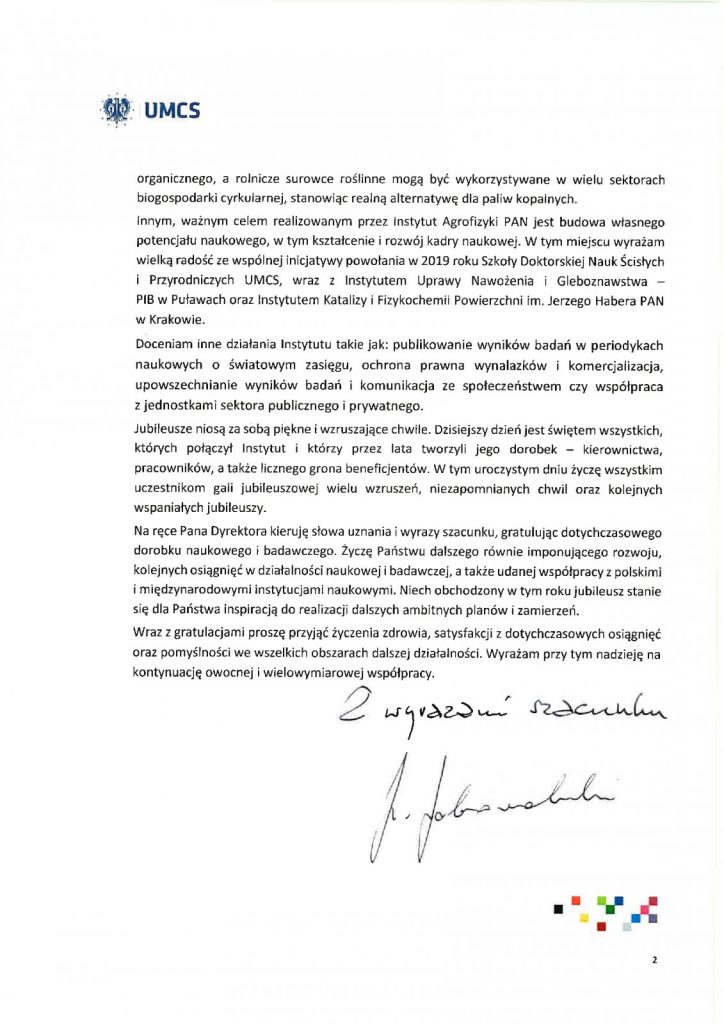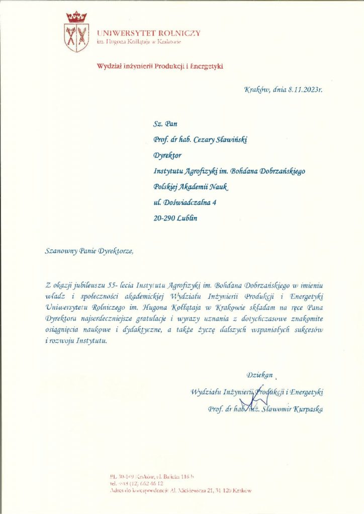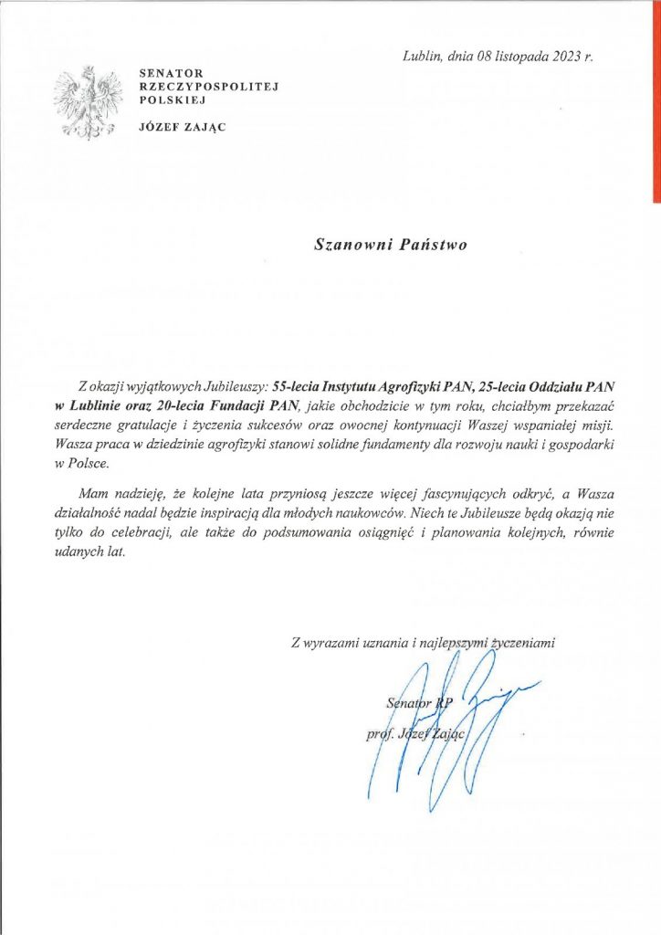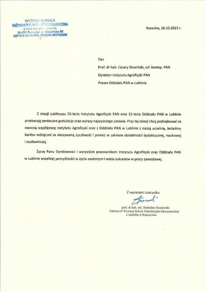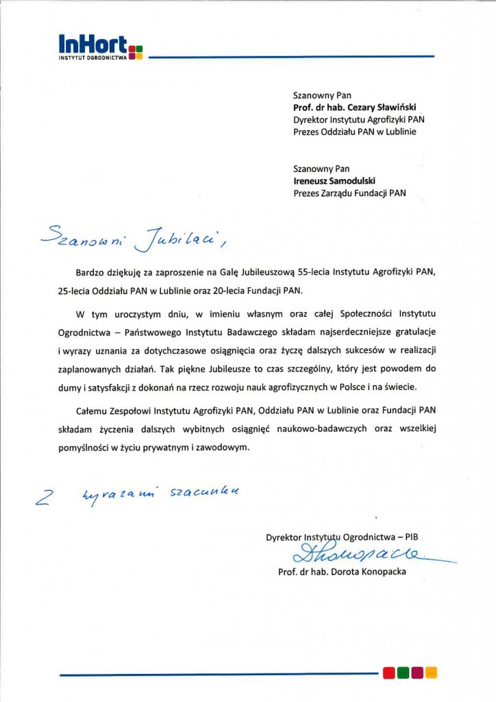 Serdecznie dziękujemy za liczne listy z gratulacjami jakie z tej okazji mieliśmy zaszczyt otrzymać: