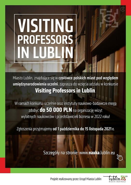 Od 1 października do 15 listopada 2021 otwarty będzie nabór wniosków w konkursie Visiting Professors in Lublin.