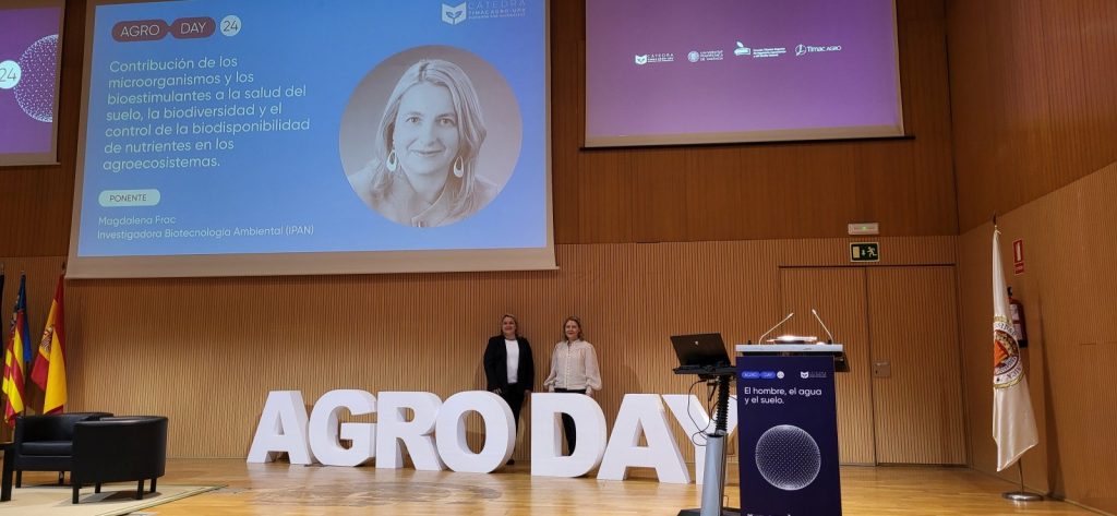 Prof. Magdalena Frąc była zaproszonym gościem i ekspertem ds. mikrobiologii gleby podczas AGRO DAY 2024 w Walencji, gdzie 29.10.2024 zaprezentowała wykład „Microorganisms and biostimulants contribution for soil health, biodiversity and control of nutrients bioavailability in agroecosystems„, bazując na wynikach badań prowadzonych w IA PAN w ramach projektów LEGUMINOSE, SPIN-FERT, SOMPACS, MICROGREENS, HoloBIOme, EcoFrits, BIO-FERTIL czy potatoMETAbiome.