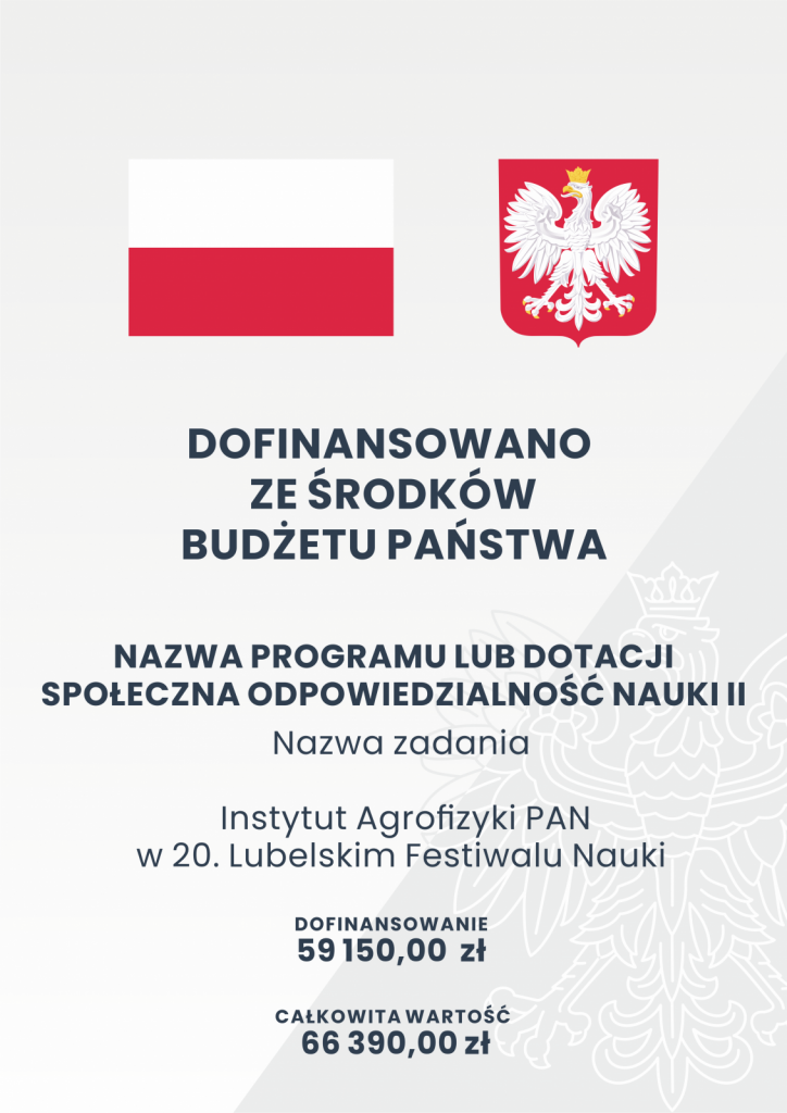 Jubileuszowy 20. Lubelski Festiwal Nauki odbył się w dniach 14-20 września 2024 r. pod hasłem „Człowiek sercem nauki”. W tym roku funkcję Organizatora Głównego pełnił Uniwersytet Medyczny w Lublinie. W ramach Festiwalu 15 września odbył się Lubelski Piknik Naukowy na Placu Teatralnym Centrum Spotkania Kultur, w godzinach 10-16.00, podczas, którego Instytut Agrofizyki PAN zaprezentował następujące pokazy: