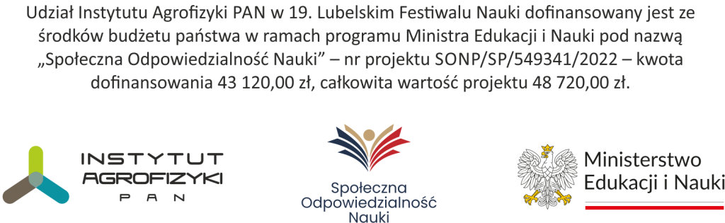 W dniach 18-24 września 2023 r. odbył się XIX Lubelski Festiwal Nauki (LFN), pod hasłem „Nauka dla przyszłości„. Lubelski Piknik Naukowy odbył się 23 września 2023 r. w Targach Lublin SA. Organizacji tegorocznej edycji przewodniczył Katolicki Uniwersytet Lubelski Jana Pawła II jako Organizator Główny. Festiwal Nauki to niepowtarzalna okazja, by poznać najnowsze osiągnięcia naukowe i technologiczne oraz spotkać wybitnych naukowców i ekspertów z różnych dziedzin. W ramach gali otwarcia XIX Lubelskiego Festiwalu Nauki przed zaproszonymi gośćmi Teatr ITP, czyli Inicjatywa Teatralna Polonistów, zaprezentował musical „Sztukmistrz”. Projekty Instytutu Agrofizyki PAN można było odwiedzać podczas całego tygodnia trwania Festiwalu, jak również podczas Lubelskiego Pikniku Naukowego.