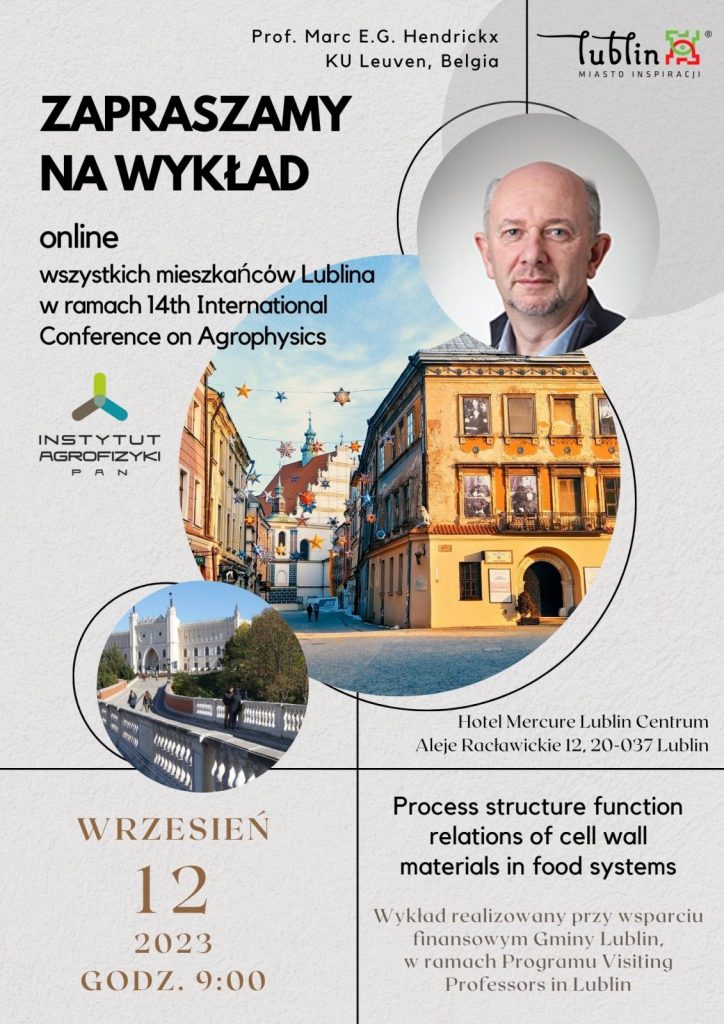 Instytut Agrofizyki Polskiej Akademii Nauk uprzejmie zaprasza na otwarte wykłady popularnonaukowe, które poprowadzi Prof. Marc E.G. Hendrickx, reprezentujący Katolicki Uniwersytet w Leuven (Belgia). Wykłady odbędą w dniach 11 i 12 września br. w ramach 14. Międzynarodowej Konferencji Agrofizycznej / 14th International Conference on Agrophysics, w sali konferencyjnej Hotelu Mercure Lublin Centrum. Osoby zainteresowane tematyką wykładów, będą mogły dołączyć do nich w formie transmisji online. Wykłady poprowadzone zostaną w języku angielskim.